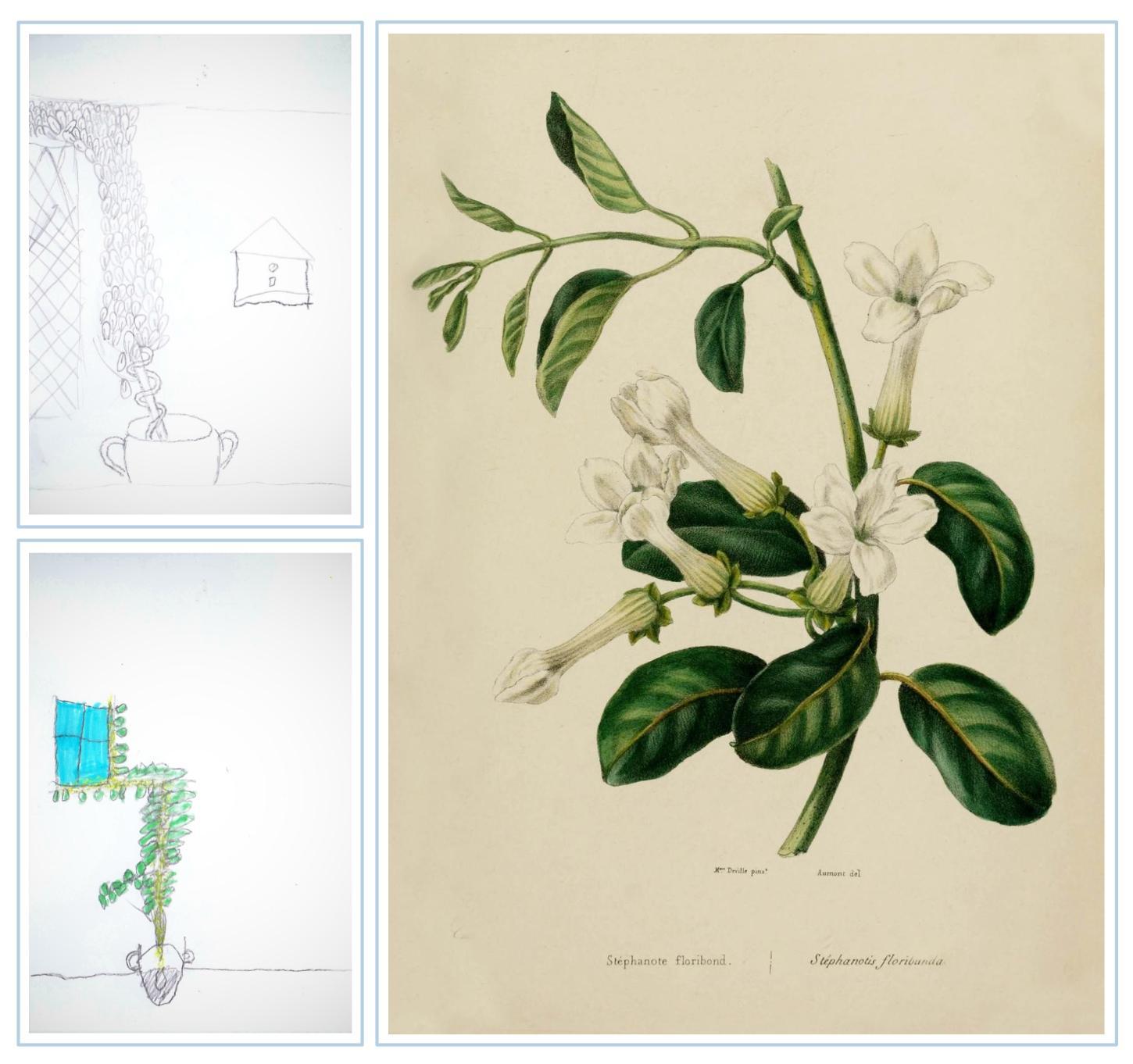 Muy habitual encontrarla referenciada por su sinónimo Stephanotis floribunda. Es una enredadera originaria de Madagascar, de floración duradera y grandes flores blancas fragantes y hojas verde oscuro, que la ha popularizado como ornamental por todo el mundo, aunque es bastante exigente en temperaturas, por lo que es más frecuente cultivada como planta de interior, pues no resiste bien cuando las temperaturas descienden de 4ºC o superan los 35ºC. También requiere bastante humedad.